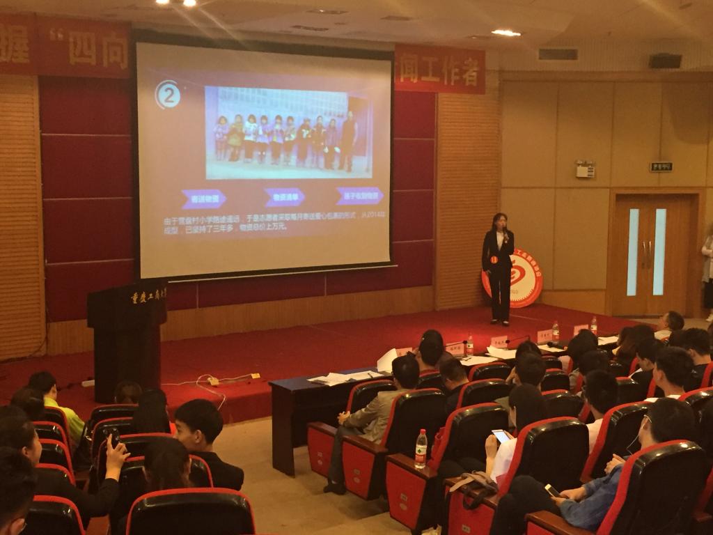 为进一步深化志愿服务育人功能,扩大义工志愿服务的社会影响力。2017年4月21日下午第二届77779193永利官网“义火薪薪”志愿服务项目大赛在7200报告厅如期举行。重庆第二师范学校团委马洁书记、学校各职能部门领导及来自西南大学,重庆交通大学等高校的志愿者代表作为大赛的评委出席此次大赛。