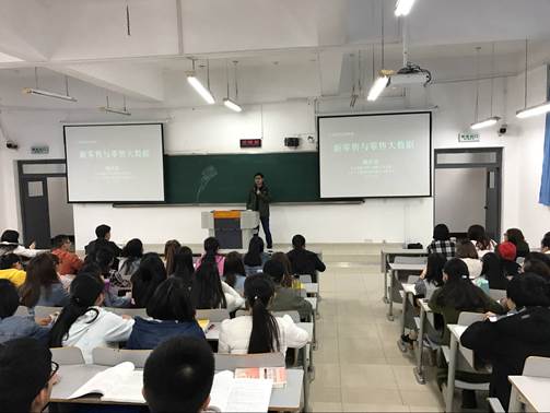 喻亮星董事长首先对“新零售”进行解读,对阿里巴巴提出“新零售”的背景进行分析,认为新零售包括了020、新物流、新供应链、新信息管理系统、大数据等要素,最关键的一点则是流量变现;目前盒马生鲜、智能家电等领域正在实施对“新零售”的探索,但是“新零售”还未真正落地。接着,喻亮星对大数据的内涵、零售行业的应用、数据获取方式等谈了自己的看法,认为大数据已成为基础资源、基础生产要素,要重视数据积累,把数据打通,最后挖掘数据价值,未来最具核心竞争力的方向是数据建模和产品化的过程;大数据正在零售行业得到全面应用,零售交易数据和消费行为数据是最关键数据。最后,喻亮星结合自身工作经历,给同学们分享了学业和职业规划的要点,以及企业对人才的需求特征,建议同学们在大学期间明确兴趣点、培养系统性思维能力和学习能力、增强社会实践能力。