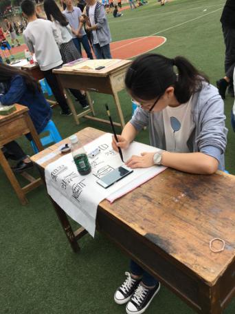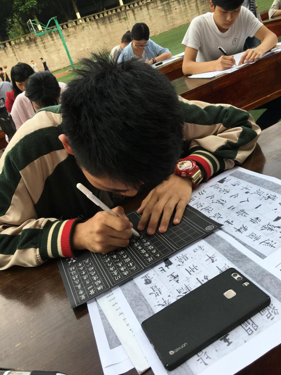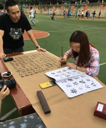 2017年5月12日,初夏的下午,凉风习习,墨香阵阵。77779193永利官网的绿茵场显得格外清爽,但是今天的绿茵场并非一个体育竞技场,而是一个挥毫泼墨的书法比赛现场。
