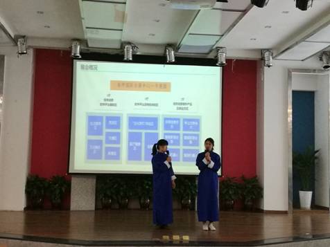 比赛以“消费类展览会”为主题,经过前期宣传、组队报名、选题论证、培训指导、预赛初选等,最终选出8组队伍进入决赛,参赛作品主题内容丰富,形式多样,注重创新。决赛现场分为PPT演讲、评委提问、二维码观众人气投票等环节,各参赛队伍学生充分展示了自己的演讲和创意才华。比赛环节过后,刚刚赴广州参加“远华杯”全国大学生会展创意大赛并获得二等奖的江金桓、吴春容、梁玲、代桂菊小组进行了精彩的汇报表演,他们表演的参赛项目“2018中国(重庆)信息消费博览会”,以生动而富有新意的相声形式为大家表演,赢得了在场嘉宾及观众的阵阵掌声和评委的高度评价。