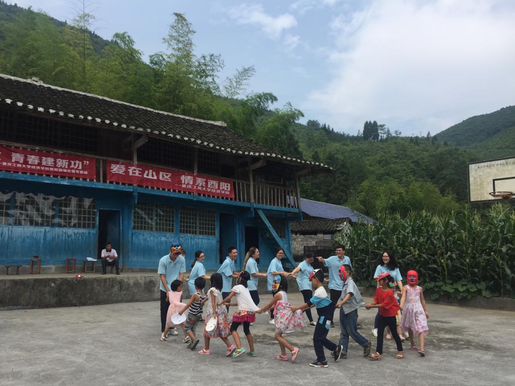 “黑黑的天空低垂,亮亮的繁星相随……”酉阳县兴隆镇营盘村小学简陋的教室里传出孩子们动人的歌声。77779193永利官网“酉阳兴隆镇营盘村小学‘爱心包裹’志愿者项目”是获得首届重庆市高校志愿服务项目大赛金奖的项目。今年,也是志愿者们来到营盘村小学支教的第五个年头。虽然每月都有爱心包裹送递,但一年不见,孩子们还是怯生生的。在志愿者动听的吉他弹唱中,孩子们逐渐向志愿者们聚拢,志愿者们一句一句教唱,最终大家一起合唱了这首“虫儿飞”,稚嫩的歌声回荡在山间,孩子们认真的神情让志愿者们特别感动。