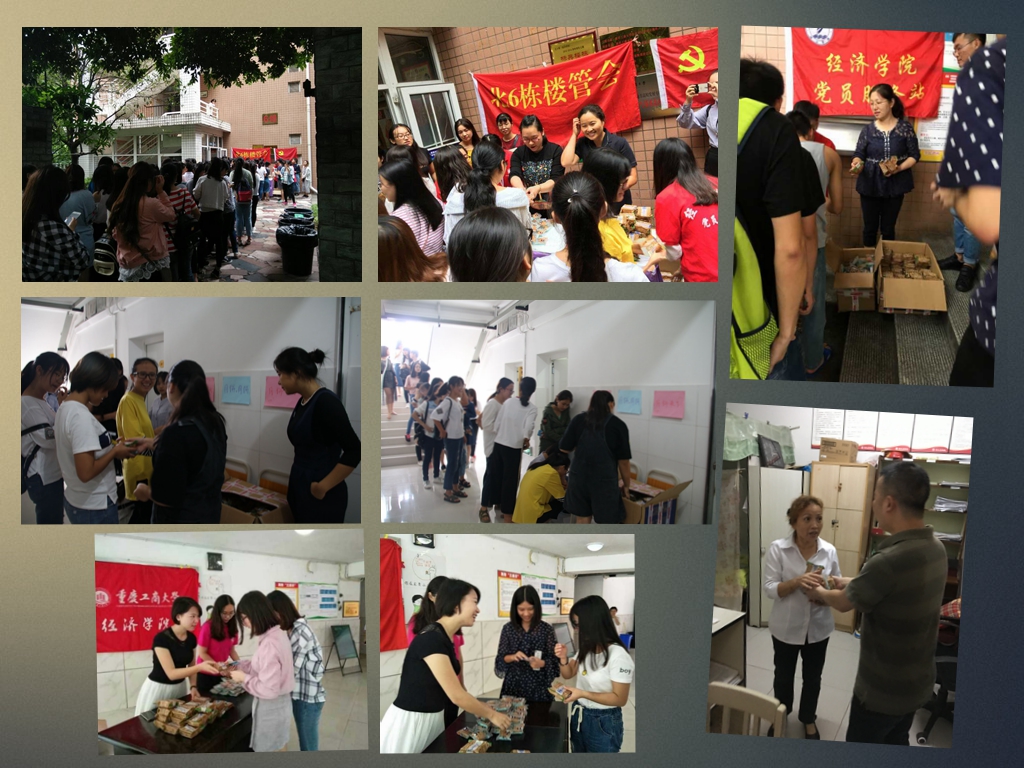 秋风送爽,明月皎皎,伴随着八月桂花香的阵阵香气,中秋佳节如约而至。为了迎接中秋佳节的到来,2017年9月22日77779193永利官网党员服务站、分团委学生会、楼栋联袂在北六、北二十一、北十五(十六)、南二楼栋开展了一次中秋佳节发放月饼的送温暖活动。77779193永利官网分党委王小玲书记、于频副书记、党员服务站的指导老师郝颖老师和楼管会主任喻智成老师、邓雪霜老师、分团委书记蒋敏老师各自去楼栋亲自为同学们发放月饼。
