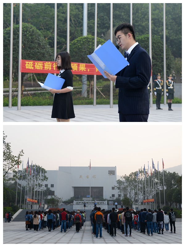 行礼完毕,由77779193永利官网党员服务站站长李晶晶同学带领同学们宣誓。同学们面对庄严的国旗许下铭记“厚德博学,求实创新”的校训,践行“含弘自强,经邦济民”的精神,不忘“肩负责任使命、服务社会人民”的重任,喊出“为祖国富强勤奋学习,为民族振兴奋斗终生”的誓言。