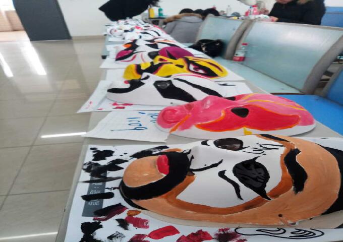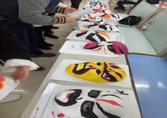 其次,具体活动环节:一是,戏曲知识介绍(戏曲变脸视频播放),这一环节让大家了解到了更多的戏曲文化知识;二是,戏曲知识抢答,这一环节将现场的气氛推向高潮,大家都积极抢答,气氛十分热烈;三是,画脸谱比赛,这一环节所有的参赛选手都争先恐后地拿起画笔,为白色面具画上了精美的图案,涌现出了许许多多精美的面具作品,不仅令人惊叹,更值得收藏纪念。
