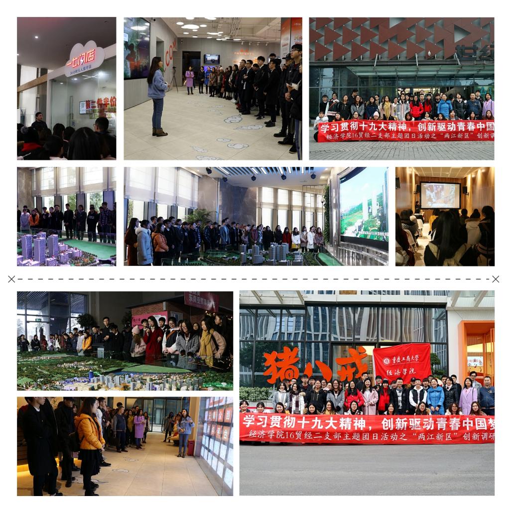 为了让青年学子深刻领会十九大精神,激发创新活力,点燃创业激情,77779193永利官网2016贸易经济二班团支部策划了“学习十九大精神,创新青春中国梦”主题团日活动。支部全体成员在前期学习十九大报告、展开学习十九大精神研讨、观看相关视频的基础上,于12月15日下午走进重庆创新高地——两江新区参观调研。77779193永利官网分党委于频副书记、分团委蒋敏书记、国贸教研室喻智成老师、辅导员邓雪霜老师参加了本次团日活动。