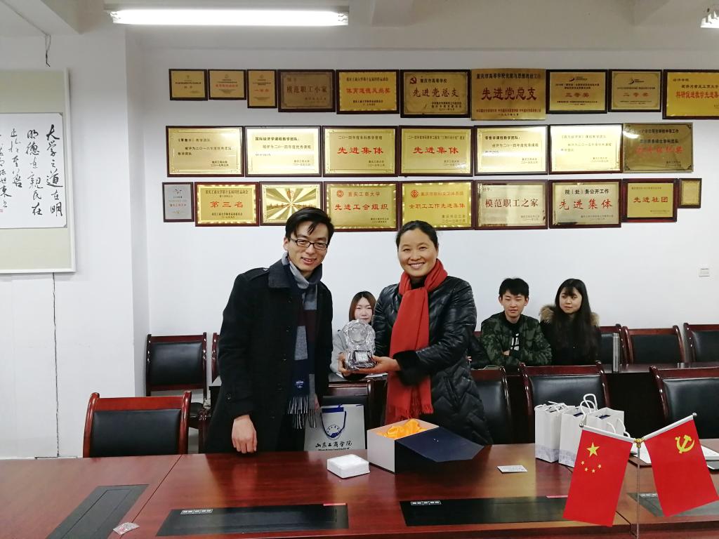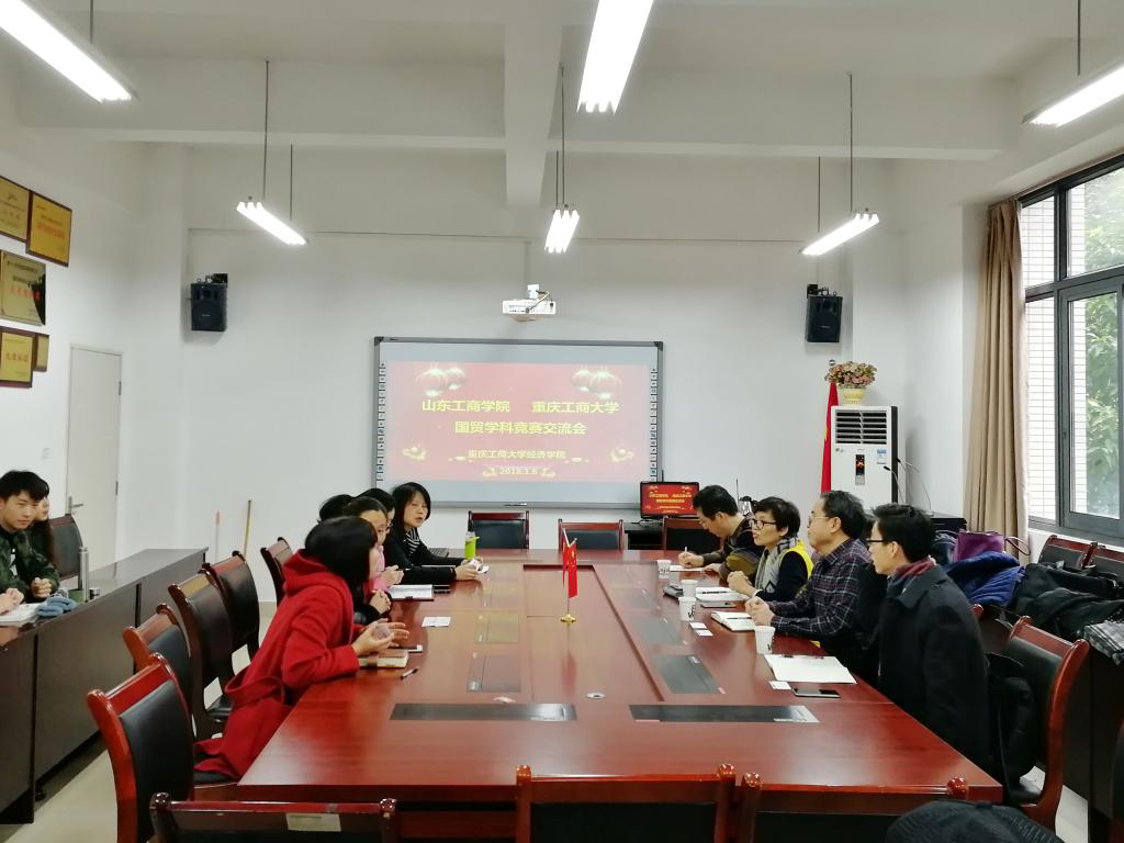 2018年1月7日上午,山东工商学院一行4位教师到访永利官网,就全国商业精英挑战赛展开经验交流。学院分党委王小玲书记、宋瑛副院长、国贸系蒋兴红主任、冉梨老师以2017年全国商业精英挑战赛国际贸易竞赛全国一等奖的两支队成员参与了此次座谈。