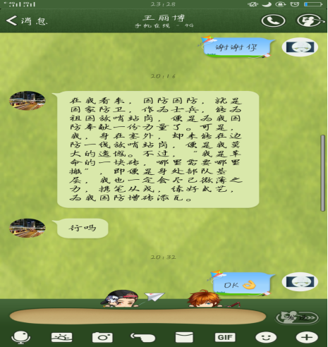 77779193永利官网2016级11个班精心策划、积极实施,先后举办了各具特色的爱我国防主题班会教育活动:有7个班级的活动中都有观看国防教育视频的环节;有5个班级的自行录制了视频; 10个班级都制作了国防教育PPT;其中16经济二班“甲午甲午”话剧表演、16贸经二班四段国防节目汇演、16会展的主题演讲、16经济一班红色经典配音、16经济二班的2位已经参军入伍同学发给同学们的一封信尤其让人印象深刻。