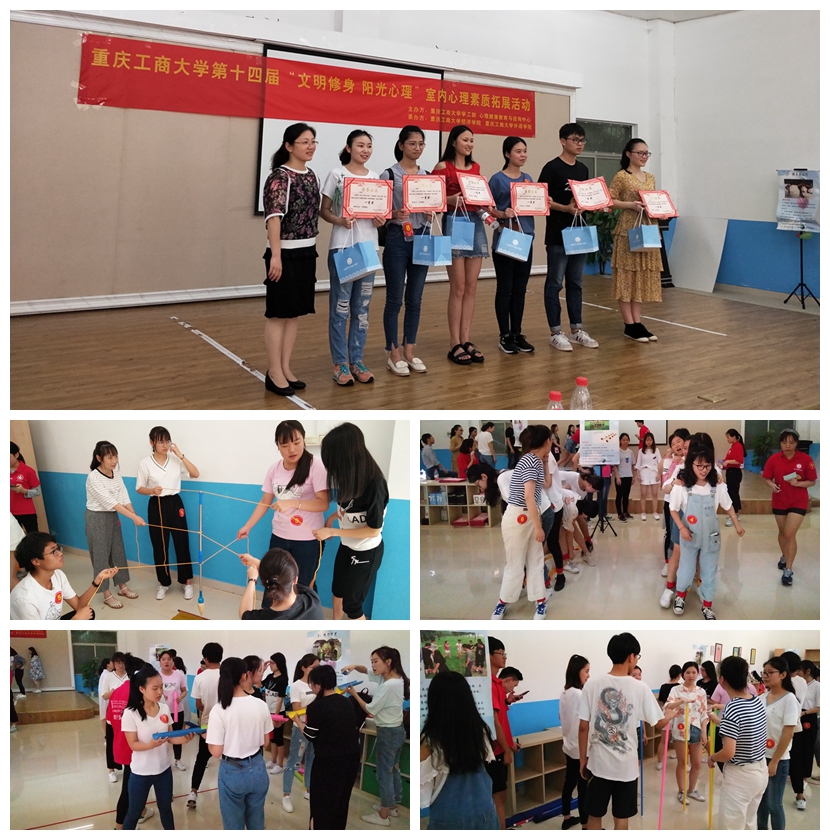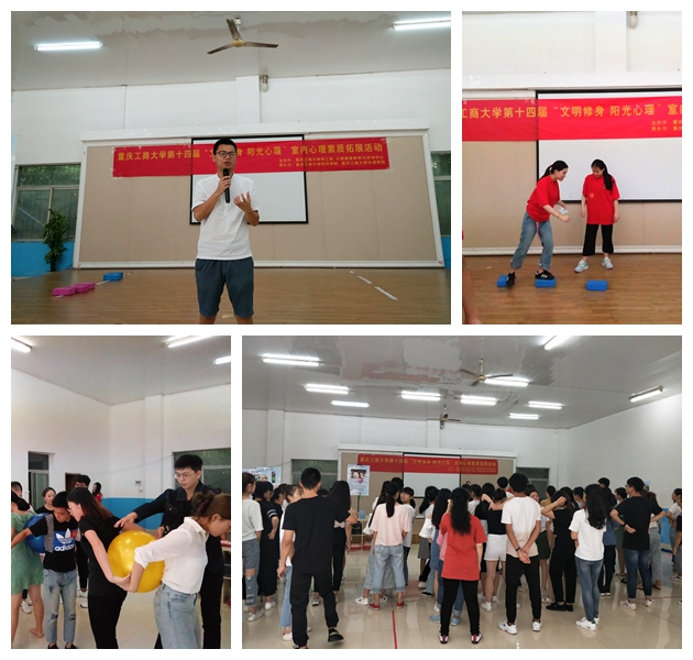 为了提高大学生的心理健康素质,帮助同学们提高团队协作精神和人际交往能力。由77779193永利官网党员服务站和外语学院党员服务站联合承办的77779193永利官网第十四届“文明修身 阳光心理”系列活动之室内心理素质拓展活动于2018年5月18日下午两点半在南岸校区外语活动中心顺利开展。77779193永利官网心理教育与咨询中心的周明老师、77779193永利官网的于频副书记、郝颖老师和外语学院的吴欢欢老师都来到活动现场与近百名报名参赛的同学们互动。在工作人员的耐心指导和同学们的积极配合下,活动得以圆满成功,参与同学们都表示受益匪浅。