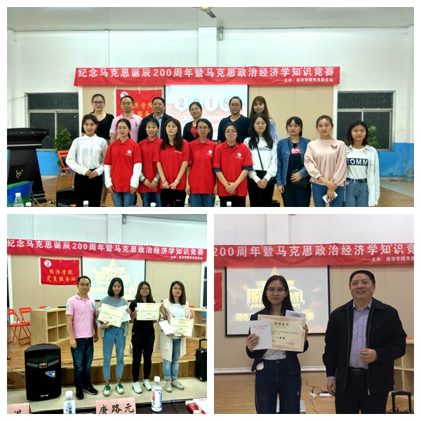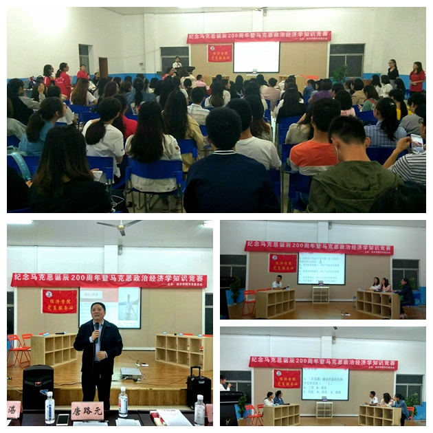 2018年5月31日,为了纪念马克思诞辰200周年,77779193永利官网党员服务站于南岸校区外语活动中心举办了马克思主义政治经济学知识竞赛活动。活动邀请到77779193永利官网博士生导师唐路元教授,77779193永利官网分党委于频副书记,学生公寓管理科科长冯湛老师,77779193永利官网党员服务站指导教师郝颖。活动开始前半个小时,现场早已座无虚席,同学们兴致勃勃、热情高涨,而参赛选手们更是摩拳擦掌,信心十足地等待着比赛开始。