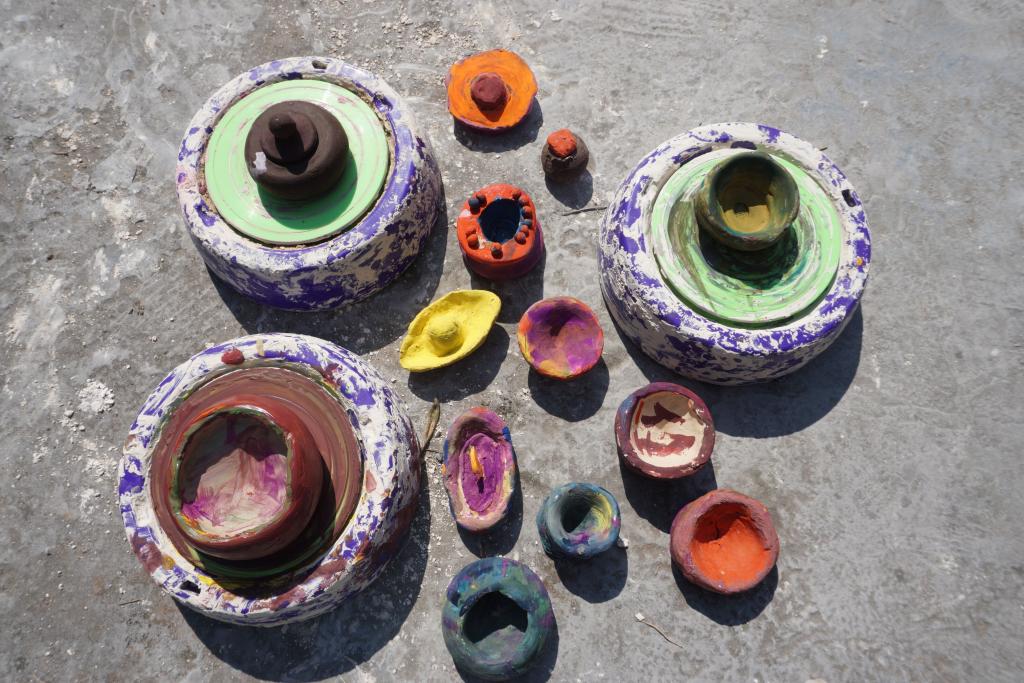 迎着清晨的阳光,实践队们早早来到了学校等待孩子们的到来。伴随着热场游戏的进行,陶艺活动正式开始。小朋友们面对每台桌上的陶艺机器,脸上都露出了新奇激动的神情。在实践队员们的引导下,小朋友们纷纷发挥自己的想象力,捏出了杯子、饭碗、小船、茶壶、金元宝等作品。在制作前期,面对新奇的陶艺机器,小朋友们不断向身旁的实践队员们提问,只为制作出一份更好的陶艺作品。教学结束后,部分小朋友依然认真地在制作陶艺。在绘画课程上,小朋友们发挥各自的色彩想象力给自己的陶艺作品上色。每个孩子都有自己的奇思妙想,有金灿灿的“金元宝”,形象逼真的“紫砂壶”,也有“七彩陶”。每一种颜色都表现出孩子们对这个世界的想象与期待。这堂别具一格的美育拓展课程,孩子们收获的不仅是开心,更是一种成就感。
