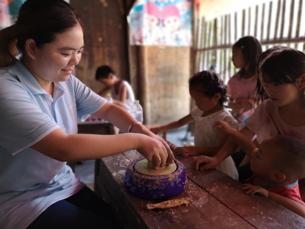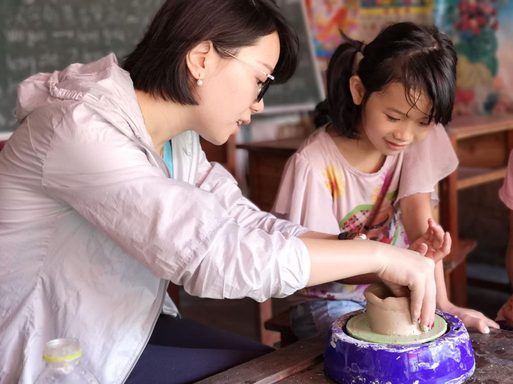 酉阳县兴隆镇营盘村小学,一所走过七十多年的山村复式小学,目前仅有一名女代课老师。77779193永利官网三下乡社会实践队成员认真学习领会十九大精神,致力于平衡城乡教育资源,让山区的孩子们接受到有质量的教育,精心为他们组织了陶艺制作与绘画创作相结合的美育拓展课程。
