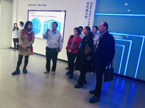 在孙总的陪同下,王书记一行参观了京东方主打产品的展示间,对京东方的智慧触摸屏的发展变迁进行了解,触摸屏的发展历史及现代领先技术让人惊叹。孙总还就公司显示和传感器件、智慧系统、健康服务等方面的业务进行了简要介绍。随后双方在京东方重庆公司接待会议室进行了合作磋商。大家就学生实习、建立移动课堂及京东方员工培训等方面进行了深入交谈,达成初步合作意向,在经过深入研究后将积极组织落实。