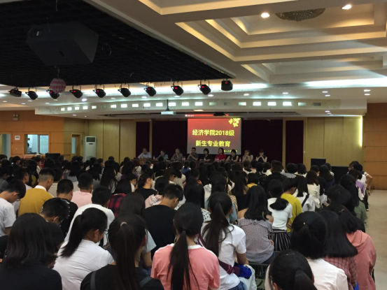 会议第二个议程由经济学系、国贸系、贸经系系主任分别组织各系学生进行了专业教育。系主任们就本专业基本情况、专业特点、培养方案等向新生们作了仔细解读,使同学们认识到了基础学习与专业学习的重要关系,为新生逐步形成专业学习思维和学习习惯奠定了良好基础。