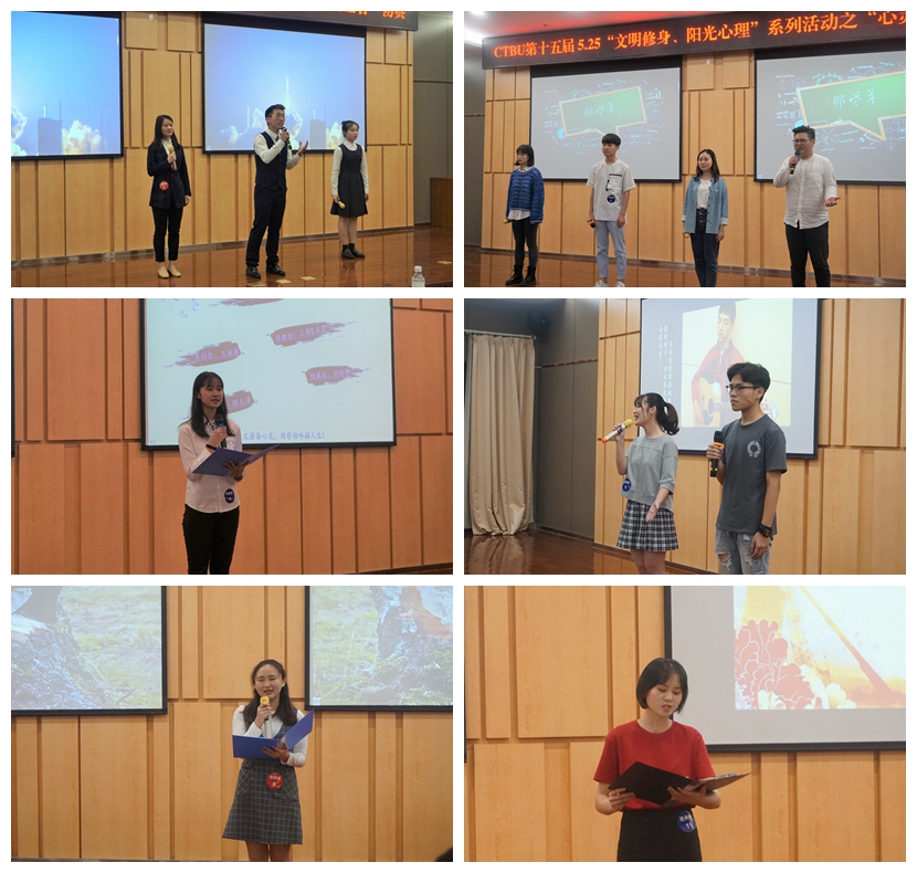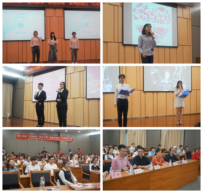 为了加强永利官网学生心理健康教育工作,营造健康良好的校园文化氛围,由党委学工部、学生处主办,77779193永利官网党员服务站承办和77779193永利官网心理工作站协办的第十五届“文明修身,阳光心理”系列活动之“心灵诵者”初赛于2019年5月10日晚上在新图书馆第一会议室成功举办。此次活动的主题为“汲取劳动智慧,吟诵劳动精神,做心灵的强者”,邀请到学校大学生心理健康教育与咨询中心胡佳怡副主任、通识学院邹奇副书记、校团委陈琛老师担任活动评委,另外77779193永利官网于频副书记和郝颖老师作为嘉宾也到场参与了此次活动。