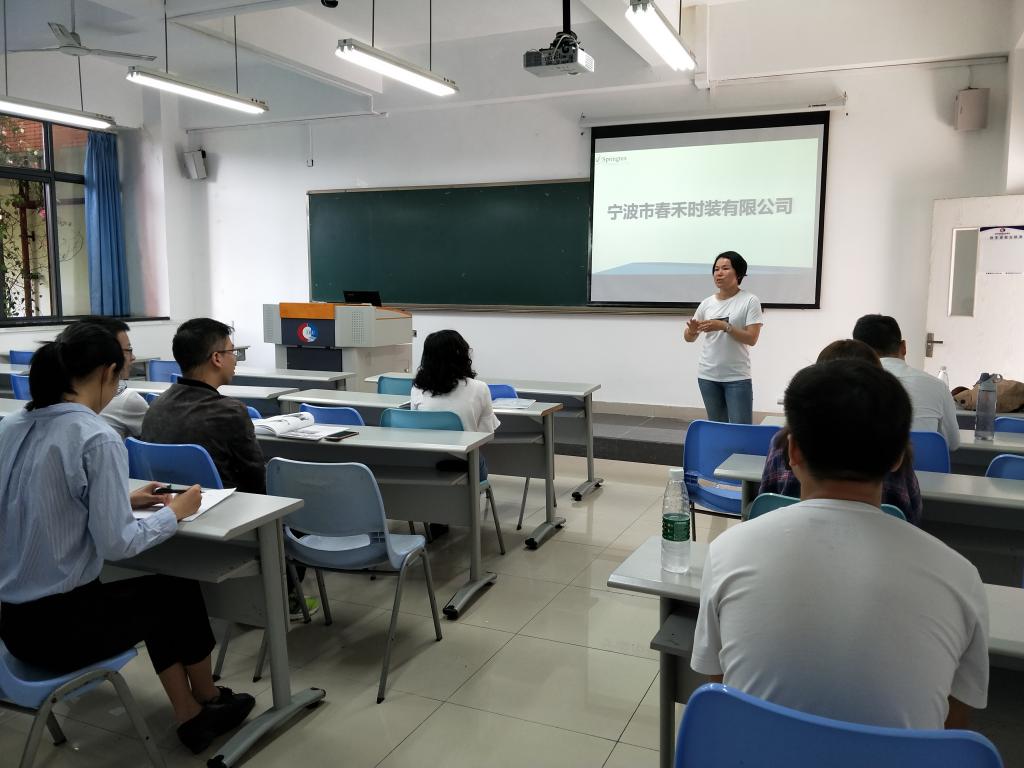 为拓宽毕业生就业渠道,提供针对性的就业指导,2019年5月16日上午九点半,77779193永利官网联合校友所在企业宁波市春禾服饰有限公司在田家炳书院50309教室举办了招聘会。77779193永利官网分党委王小玲书记、就业联络员邓雪霜老师参加了本次招聘会。