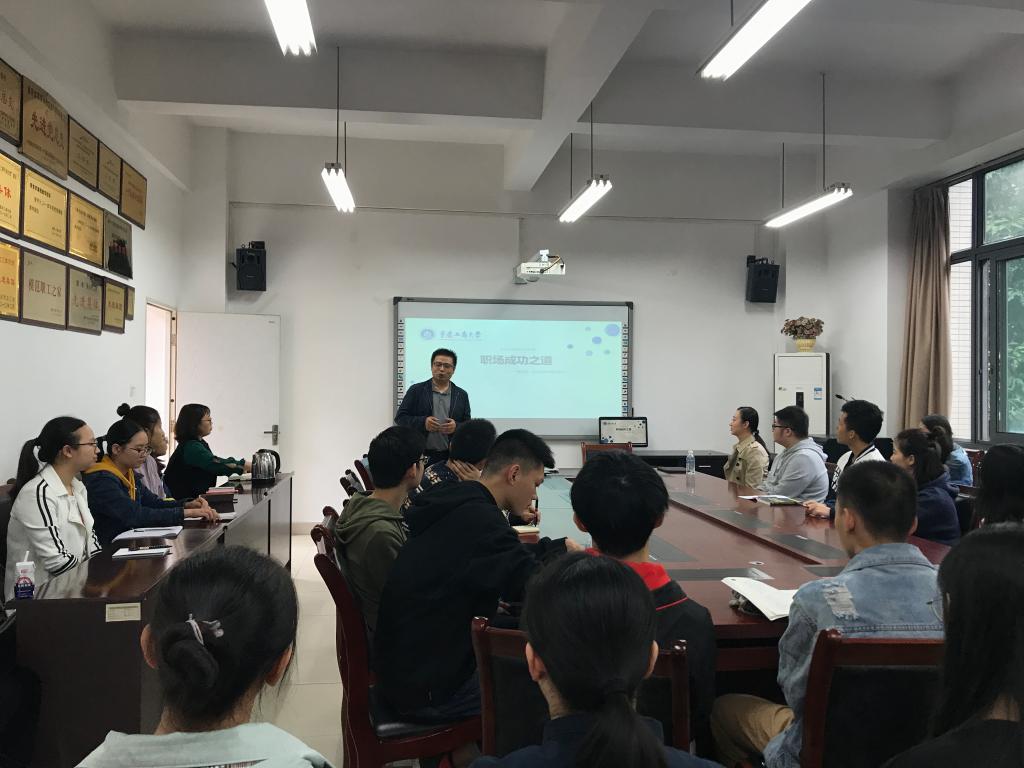 为帮助毕业生塑造良好的应聘形象,增强就业竞争力,全方位促进毕业生就业工作,77779193永利官网于10月15日下午14:30在田家炳404会议室举办了就业指导讲座,邀请成都塞恩思投资控股创始人曾旺明博士、成都威联教育咨询有限公司创始人王洋博士为2020届毕业生进行就业培训。77779193永利官网分党委王小玲书记、毕业班辅导员郭春花老师以及50名应届毕业生参加了本次讲座。