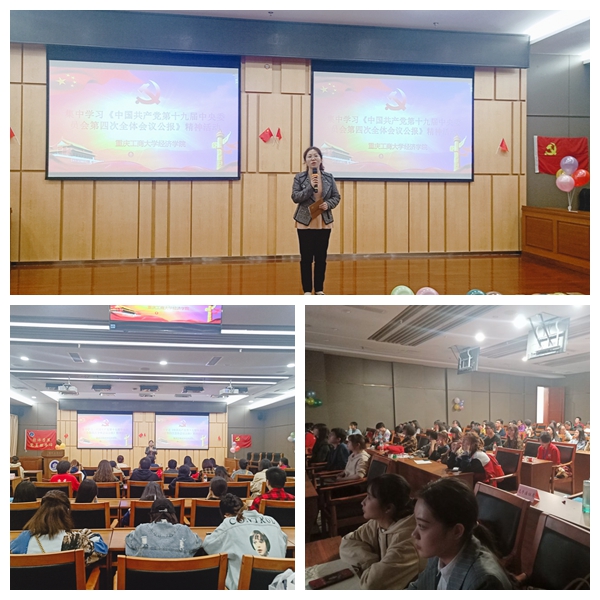 首先,于频副书记介绍了最近这几天发生的几件大事,例如2019年10月10月28日至31日在北京召开的十九届四中全会、5G开始商用等,于书记希望通过了解这些事件激发大学生们的爱国热忱,深入了解我国国家制度和国家治理体系的显著优势,感受中国发展的加速度,从而为实现中华民族伟大复兴而勤奋学习。接着,组织在场师生集中观看了《中国共产党第十九届中央委员会第四次全体会议公报》的视频。最后,现场的同学纷纷发表感言,不少同学们都认为:70年的辉煌成就足以彰显中国特色社会主义制度和我国国家治理体系的显著优势,为了实现中华民族伟大复兴必须继续大力推进国家治理体系和治理能力现代化,每个人都积极为祖国的发展贡献绵薄之力。