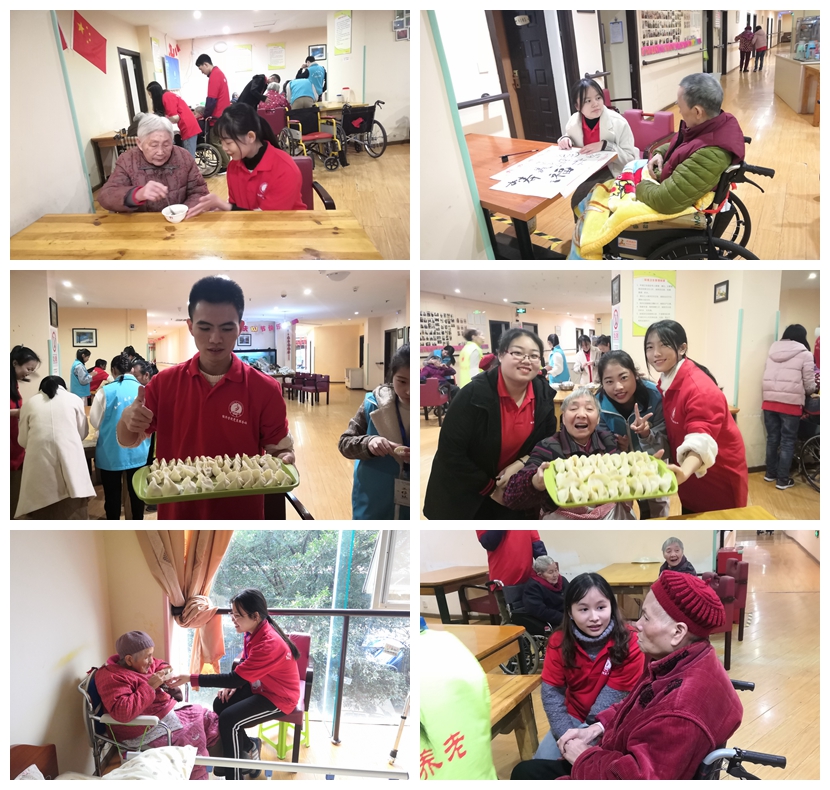 14点30分,经济学子们帮助刚午休完毕的老人们起床、穿衣、带老人们在房间里走动,活动身体。随后,一部分同学陪同老人们的同时,另一部分同学开始为老人们包饺子,煮饺子。在养老院工作人员的介绍和帮助下,同学们都尽量根据老人们的喜好和身体状况进行服务,有的为老人按摩;有的陪老人下棋;有的陪老人唱歌;有的听老人唠家常……。饺子煮好后,77779193永利官网的同学们便为老人们盛好饺子并喂老人们吃。77779193永利官网党员服务站成员热情洋溢,对老人们关心体贴,老人们脸上也都洋溢着幸福的微笑,同学们也满心欢喜。16点30分,此次聚福岛养老院志愿服务活动圆满结束。