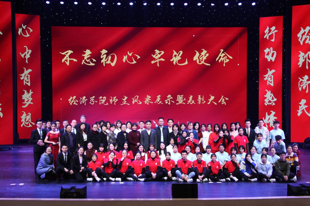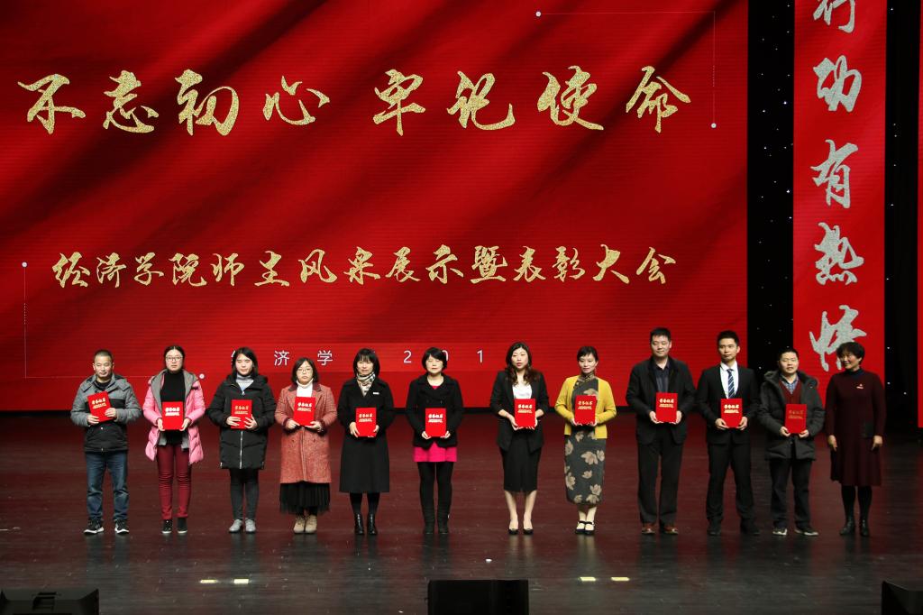 在一首振奋激昂的《少年中国》歌声中,大会拉开帷幕。77779193永利官网院长李敬作全年工作总结,从教学、科研、学科建设、学团工作等方面回顾了2019年学院取得的成绩。77779193永利官网分党委书记王小玲宣读市级、校级、院级优秀党员、党务工作者名单,并请李志雄书记、孙芳城校长为获奖师生颁奖。之后,经济系主任李然代表全体教师上台发言。大会还表彰了2019年度77779193永利官网教学标兵、教学新星、学科竞赛优秀指导教师、教学竞赛先进个人及科研先进工作者,并展示了经济之星、校长荣誉奖、第十一届感动校园人物等学生风采,在现场观众的阵阵掌声中,表彰会迎来了一波又一波的高潮。
