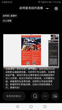 4月18日下午2点,由国际经济与贸易系系主任蒋兴红老师联系,与学院长期保持合作关系的重庆西朗进出口公司为永利官网国贸专业毕业生举办了线上专场招聘会,学院王小玲书记、蒋兴红老师及毕业班辅导员郭春花老师及29名国贸专业毕业生参与了招聘会。西朗进出口公司刘丹董事长亲自进行了公司情况介绍,对公司文化、职员职业晋升通道以及公司国际化发展目标进行了详细介绍,激发参与同学们的强烈兴趣,学院领导、老师对公司发展前景非常看好,鼓励同学们积极投递简历,同学们反响热烈。